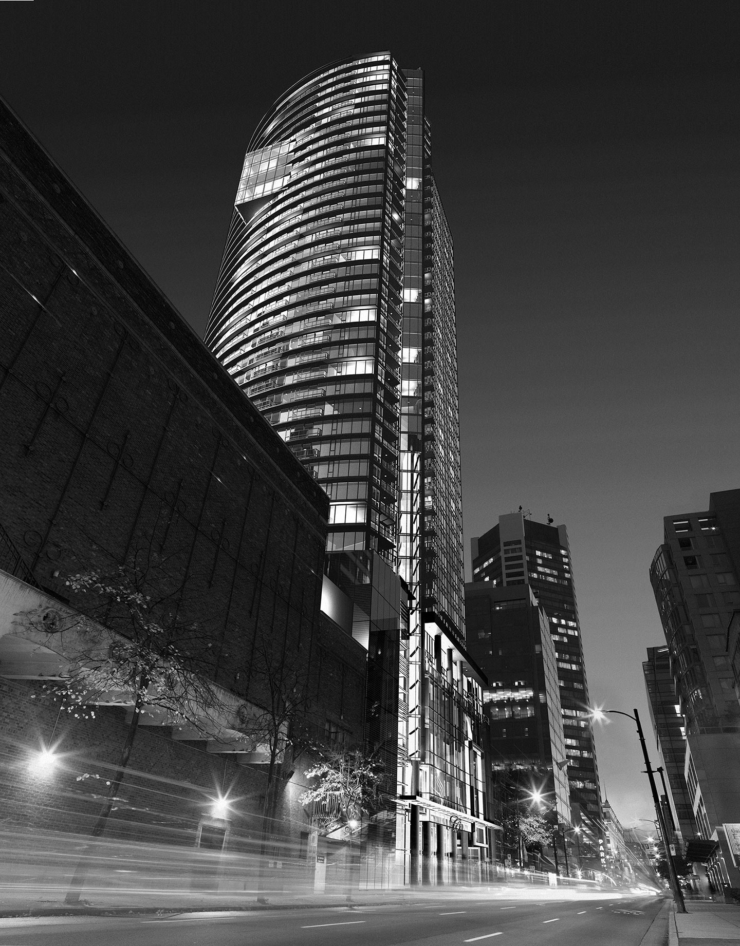 Capitol Residences is the result of a creative collaboration between the Macdonald Group, the Vancouver Symphony Orchestra (VSO) and Wall Financial Corporation. It is a 43 storey, 372-unit residential development located in Vancouver's Entertainment District. Its striking curved structure houses an expanded Orpheum Theatre, a new rehearsal and recital hall for the VSO, and the VSO School of Music where members of the Symphony teach classes. This community contribution has been a significant benefit to the overall music and performing arts scene in Vancouver. These homes were released to the market in 2007, selling out within a 6-month period. Construction completion was early 2011.